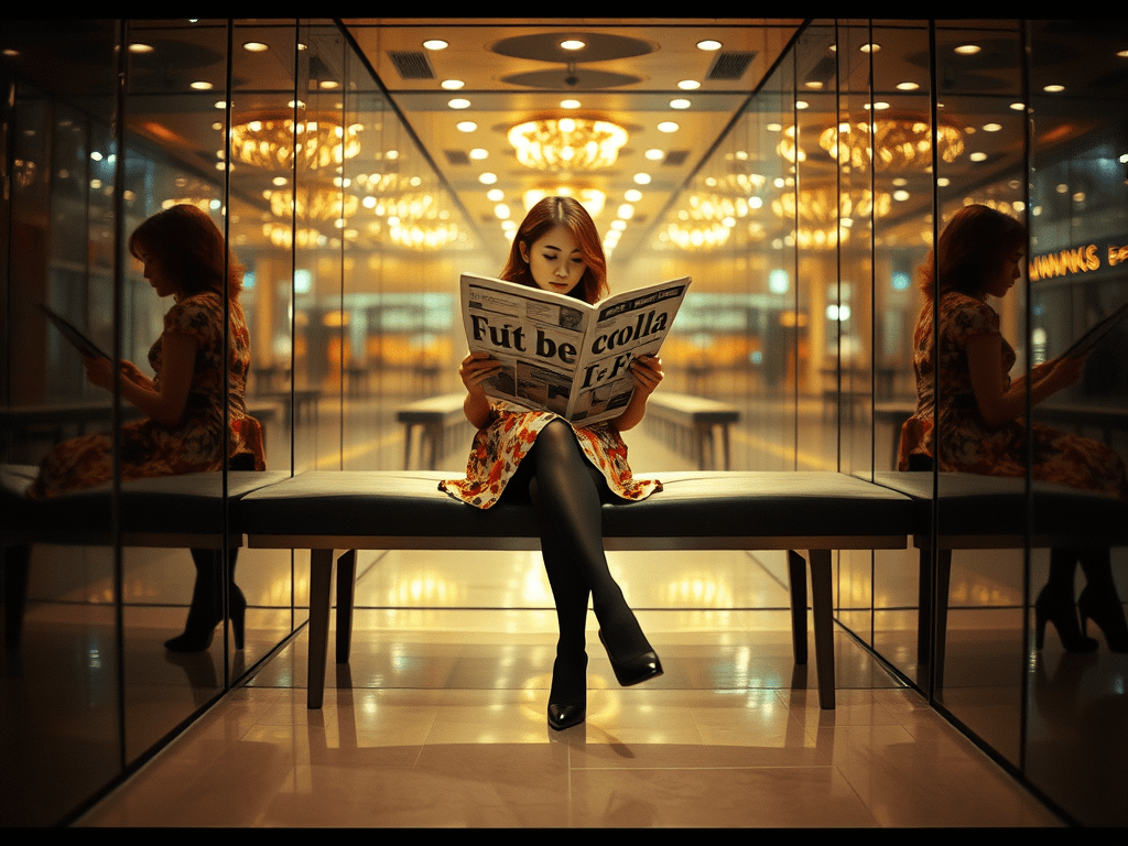 Je trouve que, pour une fois, il n’y a rien de vraiment aberrant, si on excepte quelques reflets pas vraiment conformes aux lois de monsieur Descartes. C’est juste que globalement, bien que relativement joli ça ne correspondait pas à ce que je recherchais, ça manquait notamment d’effet de miroir et de répétitions. Je précise au passage que j’ai forcé le prompt, en utilisant directement l’article le résultat ne ressemblait à rien.