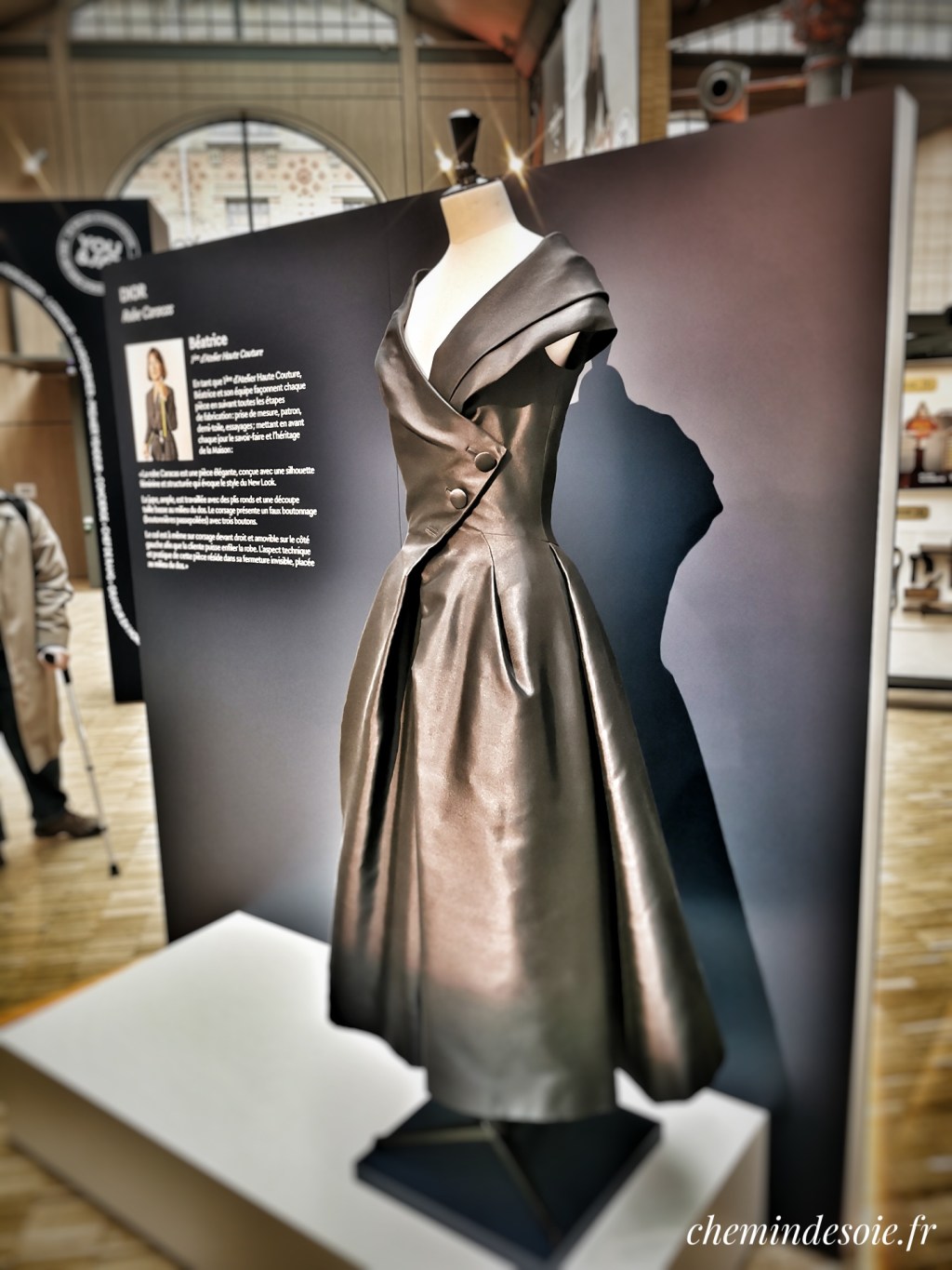 En tout cas, d’après une petite dame prénommée Gabrielle, la petite robe noire, ici vue par les couturières de chez Dior — nous avons vu exposée une autre robe de la même maison, munie cette fois d’une sorte de crinoline, mais à mon humble avis elle tenait plus du gros abat-jour et n’avait pas le charme de celle-ci !